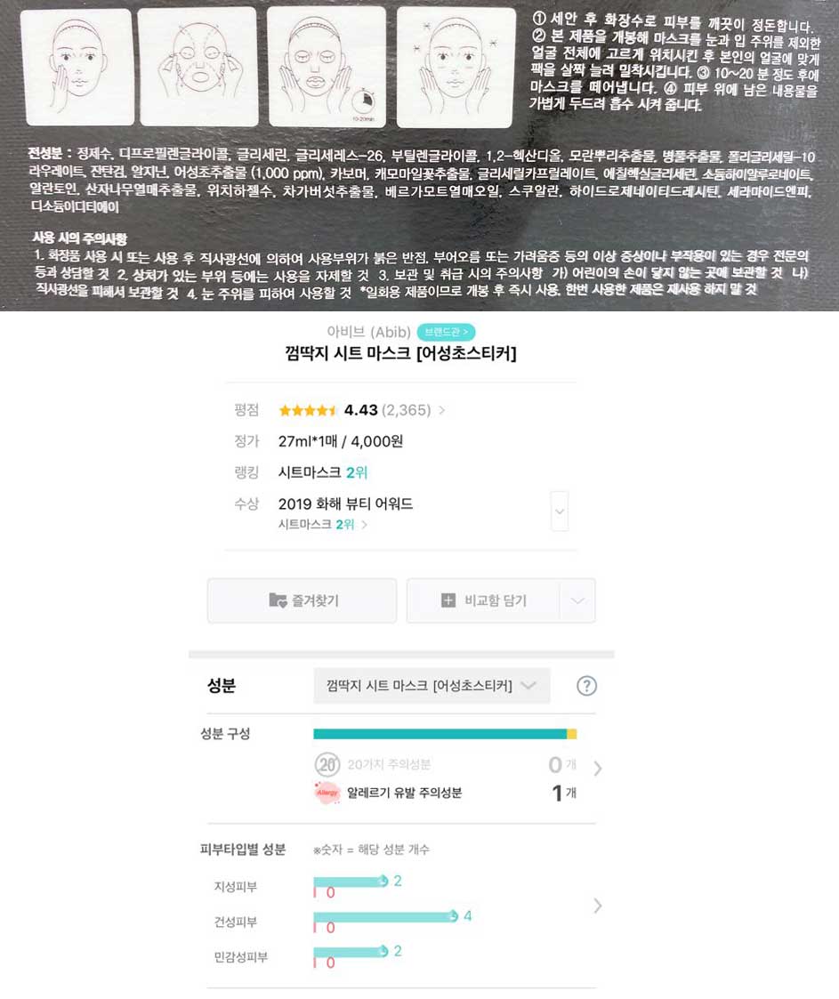 저는 이 팩을 화해에서 보고 성분이랑 후기가 너무 좋아서 처음 구매했었어요